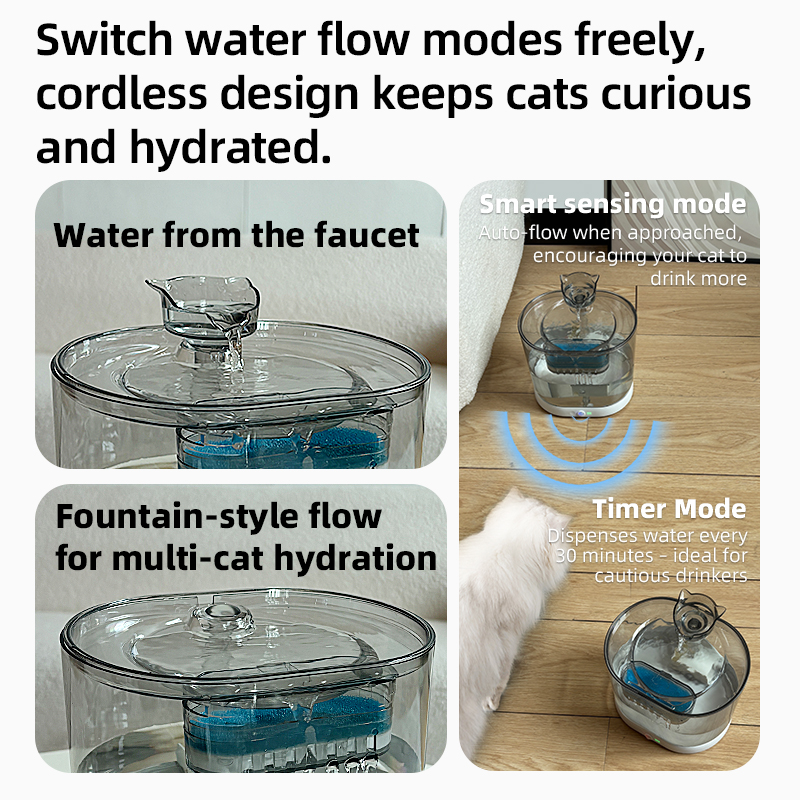 The Solution: Equipped with a 2-meter motion sensor, this automatic pet waterer springs to life only when your pet approaches. It also offers a Timed Mode for regular refreshing.